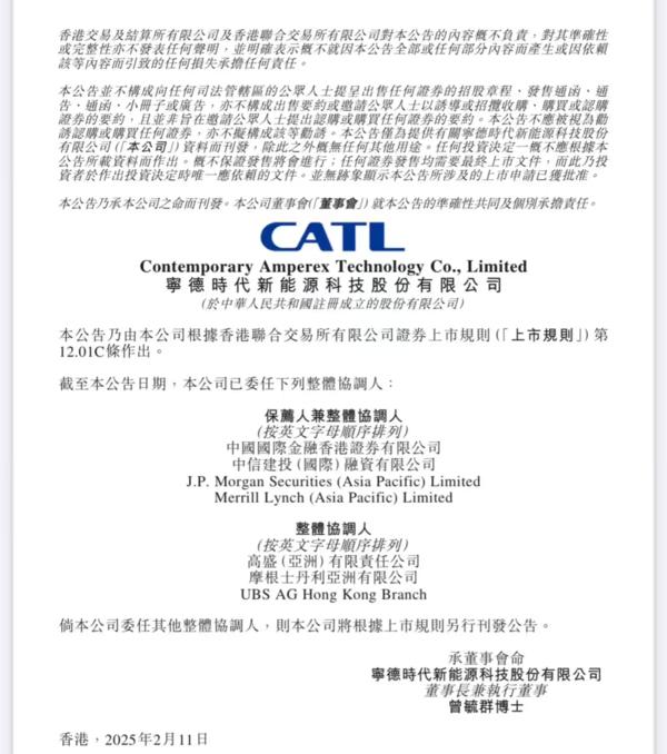 2024年12月26日晚,宁德时代曾发布公告称,为进一步推进公司全球化战略布局,打造国际化资本运作平台,提高综合竞争力,公司拟发行境外上市外资股(H股)股票并申请在香港联交所主板挂牌上市。此前彭博在一篇报道中称,宁德时代可能通过在香港上市中募集至少50亿美元(当时约合人民币365亿元)资金,并称这将是2021年初以来香港最大规模的上市交易。